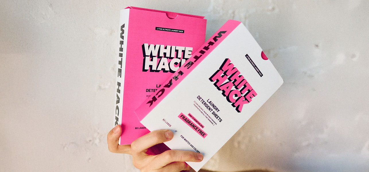 The White Hack is a modern laundry sheet offering premeasured detergent sheets that dissolve completely in hot and cold water. They are made with plant-based ingredients that skip the harsh chemicals found in traditional detergents.